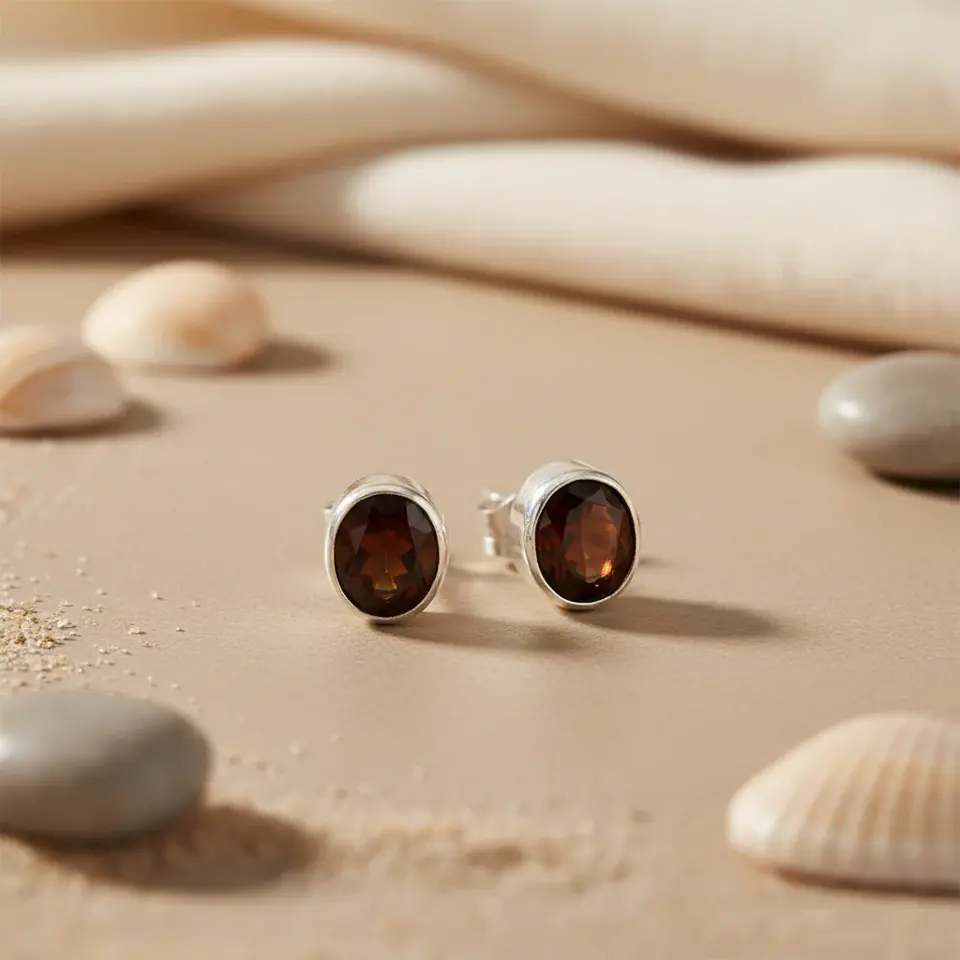 925 Silver Stud Earrings Garnet Rose Gold Gemstone Jewelry for Women Trendy Hoop Design for Engagement Featuring Zircon Pearl
