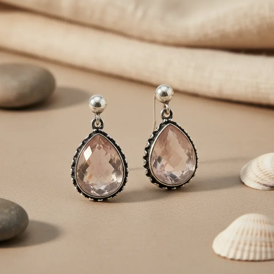 925 Silver Teardrop Earrings with Pink Gemstone 14K Gold Plated Drop Earrings for Women for Wedding or Gift
