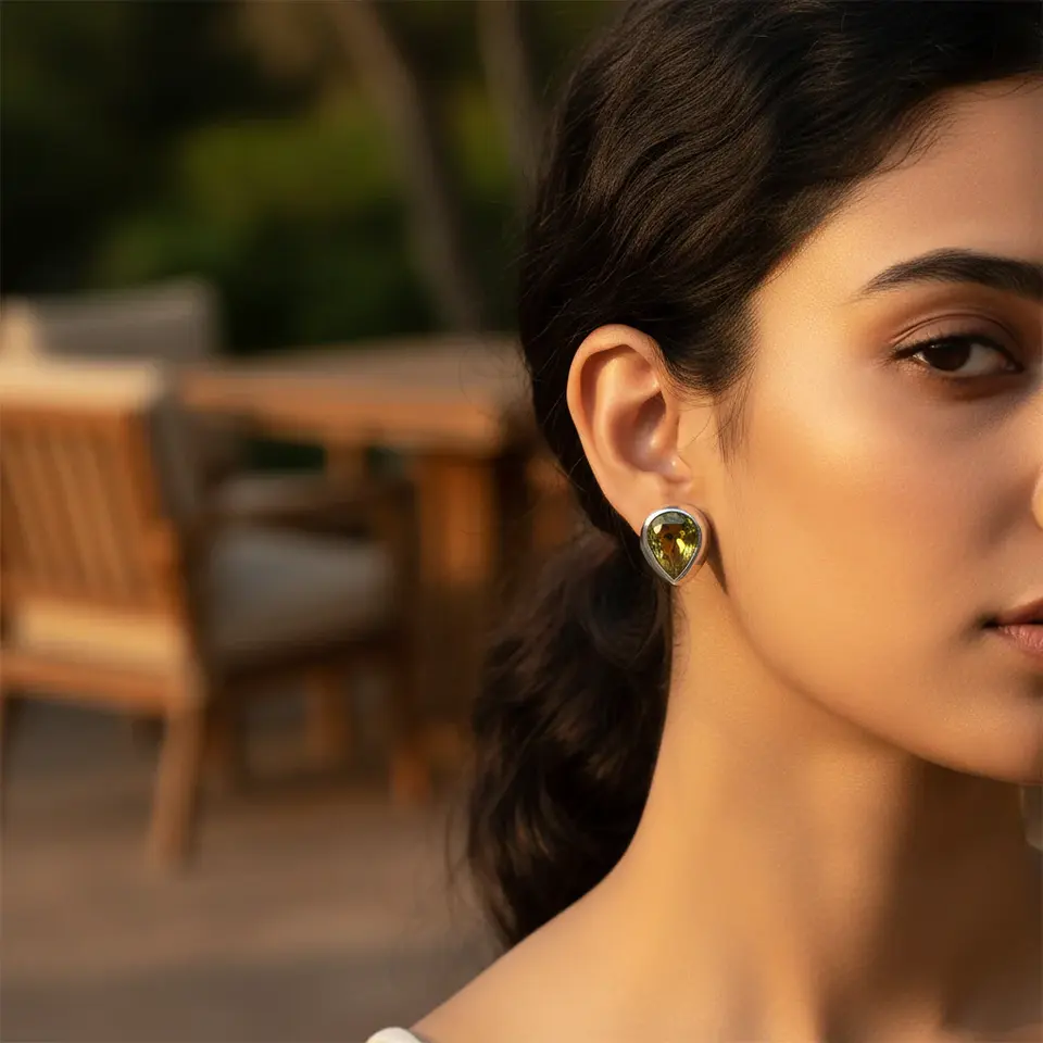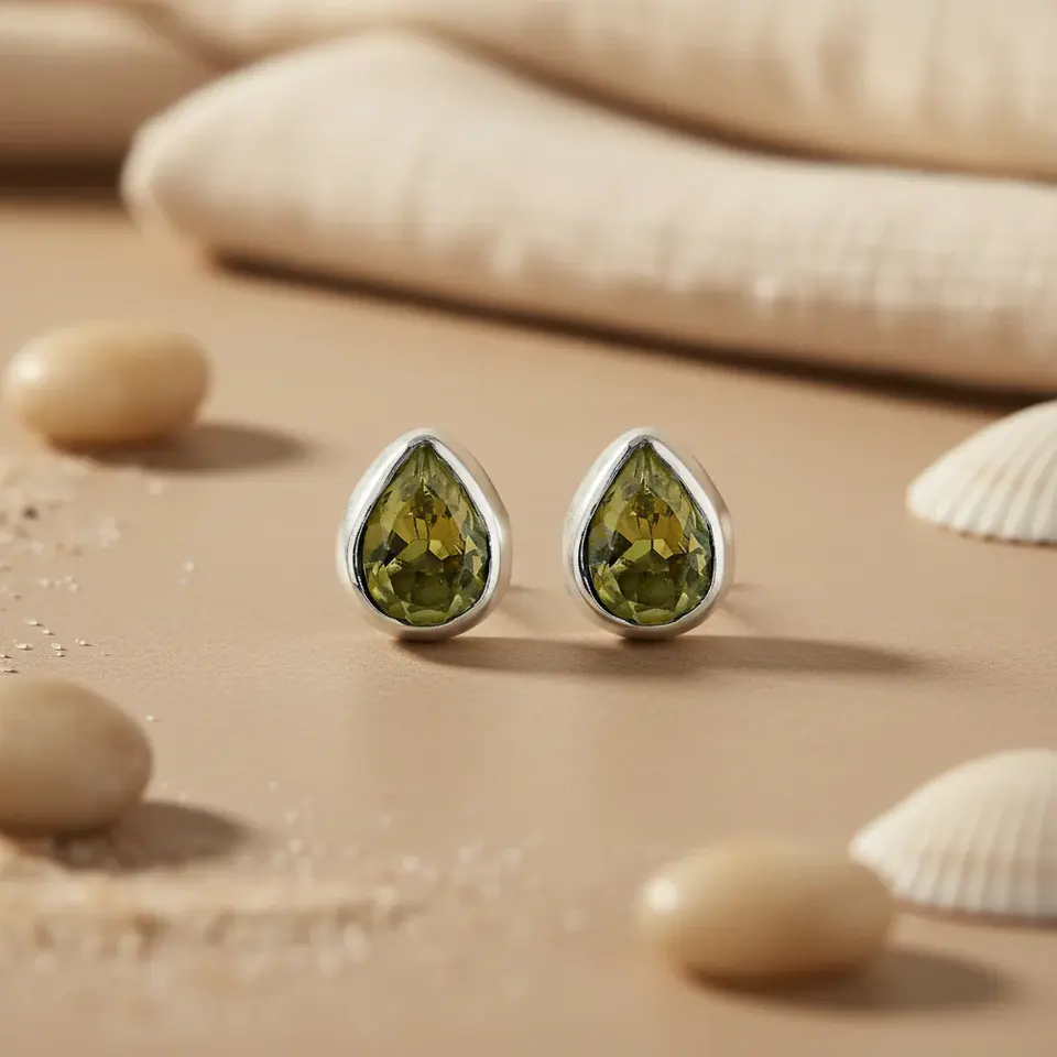 "925 Silver Teardrop Stud Earrings for Women Fashionable Peridot Jewelry"