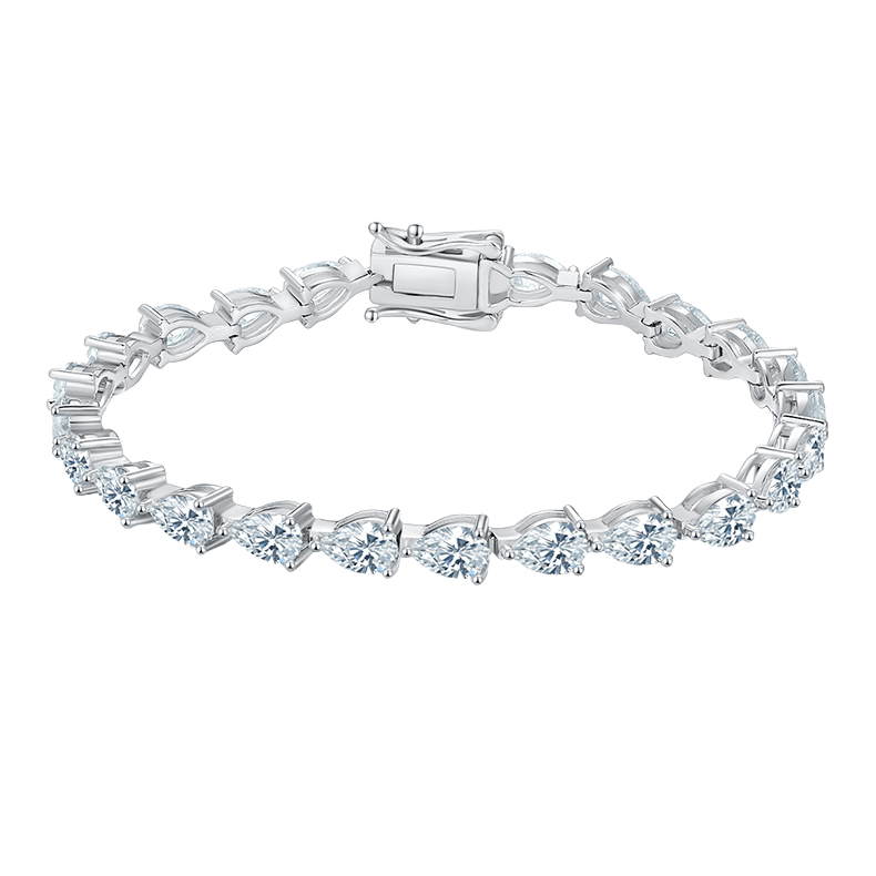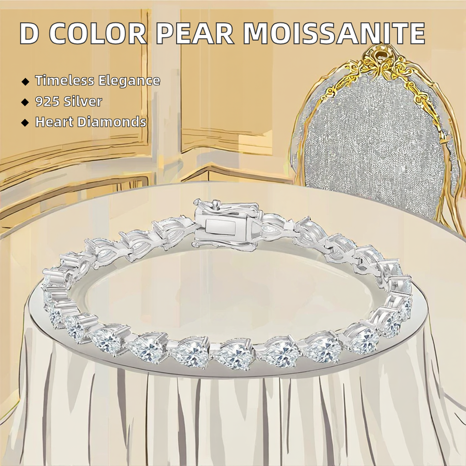 925 Silver Tennis Bracelet with De D Color Pear Cut Moissanite Iced Pear Cut Moissanite Bangle