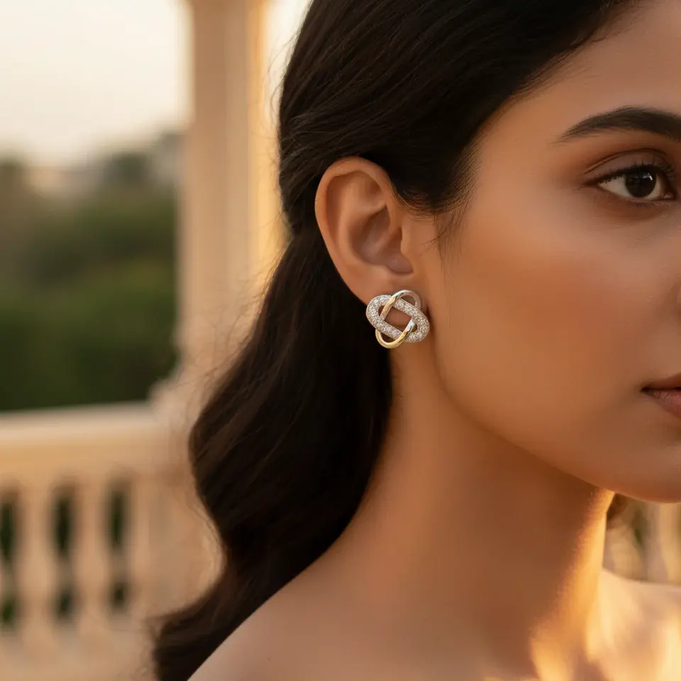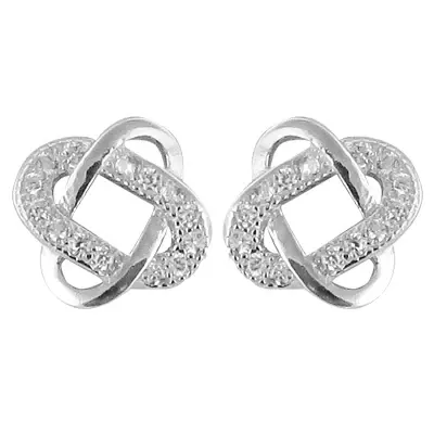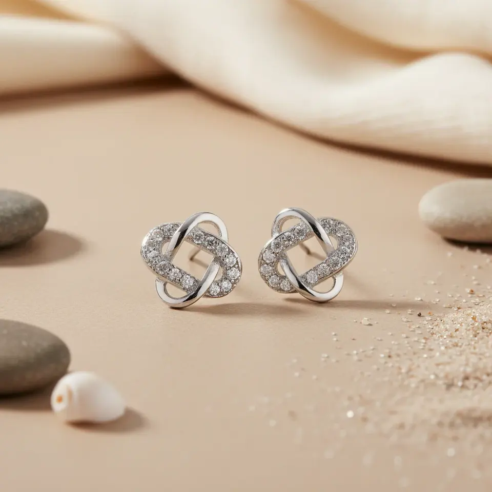 925 Silver Trendy Knot Stud Earrings with Cubic Zirconia Diamond Pearl Geometric Pattern for Engagement Gift Jewelry for Women