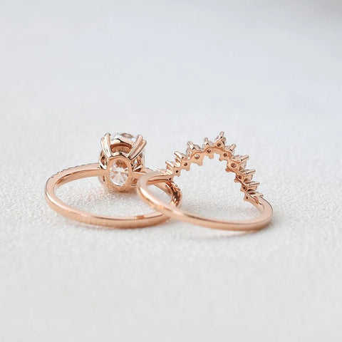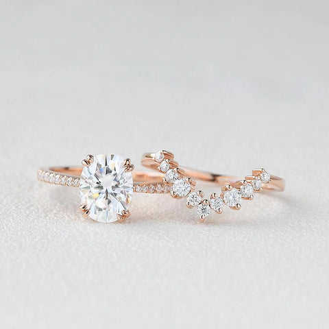 925 Silver Unique and Elegant Moissanite Diamond Oval Cut Bridal Ring Set with Side Accent Wedding Jewelry