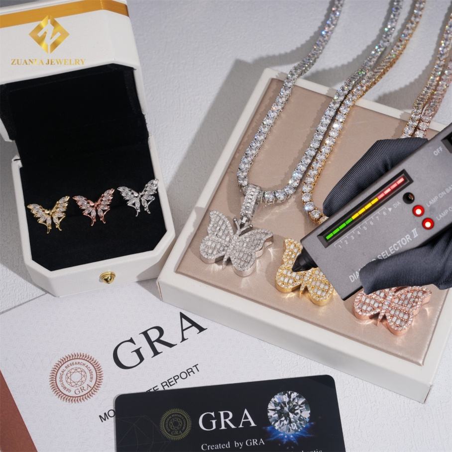 925 Silver VVS Moissanite Butterfly Women Jewelry Marquise Earrings Iced Out Diamond Bracelet & Ring & Earrings & Pendant Set