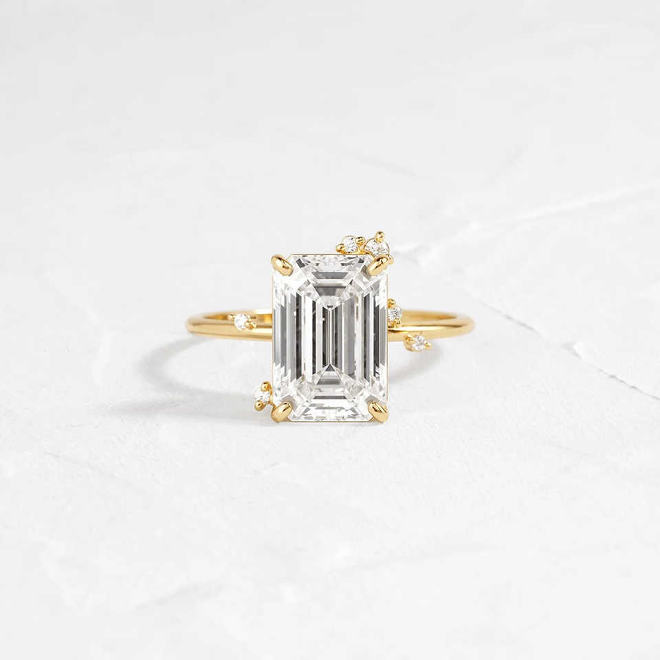 925 Silver Vintage Emerald Cut Moissanite Ring Elegant Gift for Women