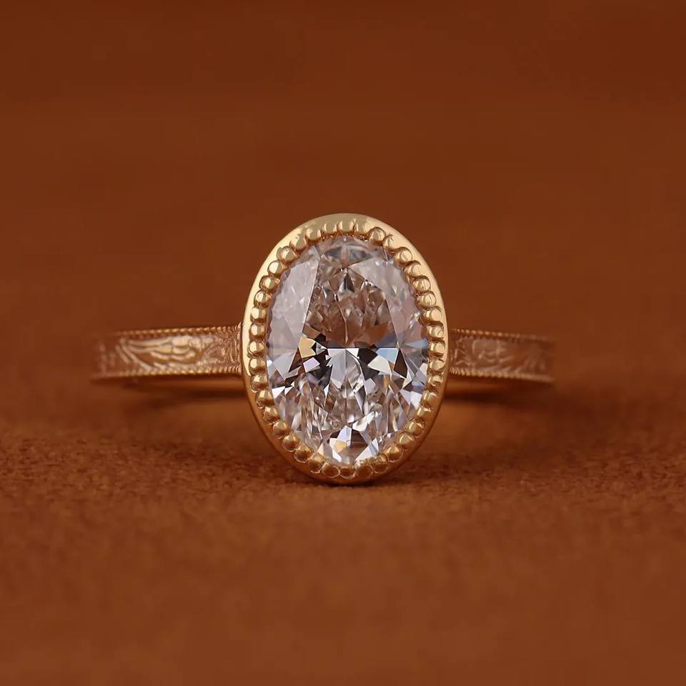 925 Silver Vintage Ring Band with 3Ct Oval Cut for GIA Moissanite Claw Setting Inlay Hip Hop Style Engagement Ring for Wedding