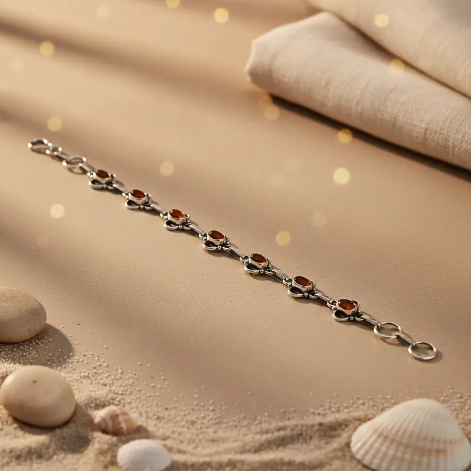 925 Silver Vintage Style Carnelian Bracelet for Women Diamond Set Bangles for Wedding Anniversary & Party