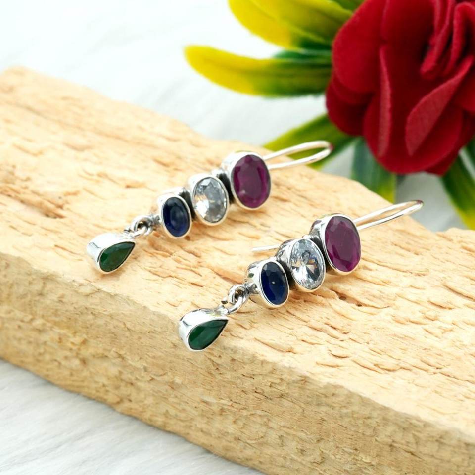 925 Silver Wedding Earrings with Natural Gemstones-Emerald Ruby Sapphire Multi-Color Diamond Jewelry E0156-GS