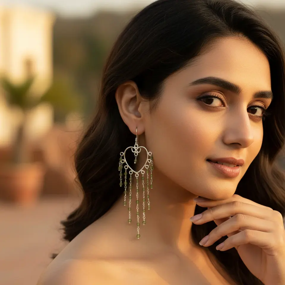 925 Silver Women's Dangle Earrings with Green Peridot Gemstone Fashion Jewelry