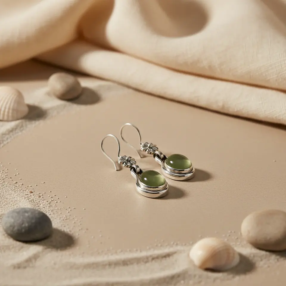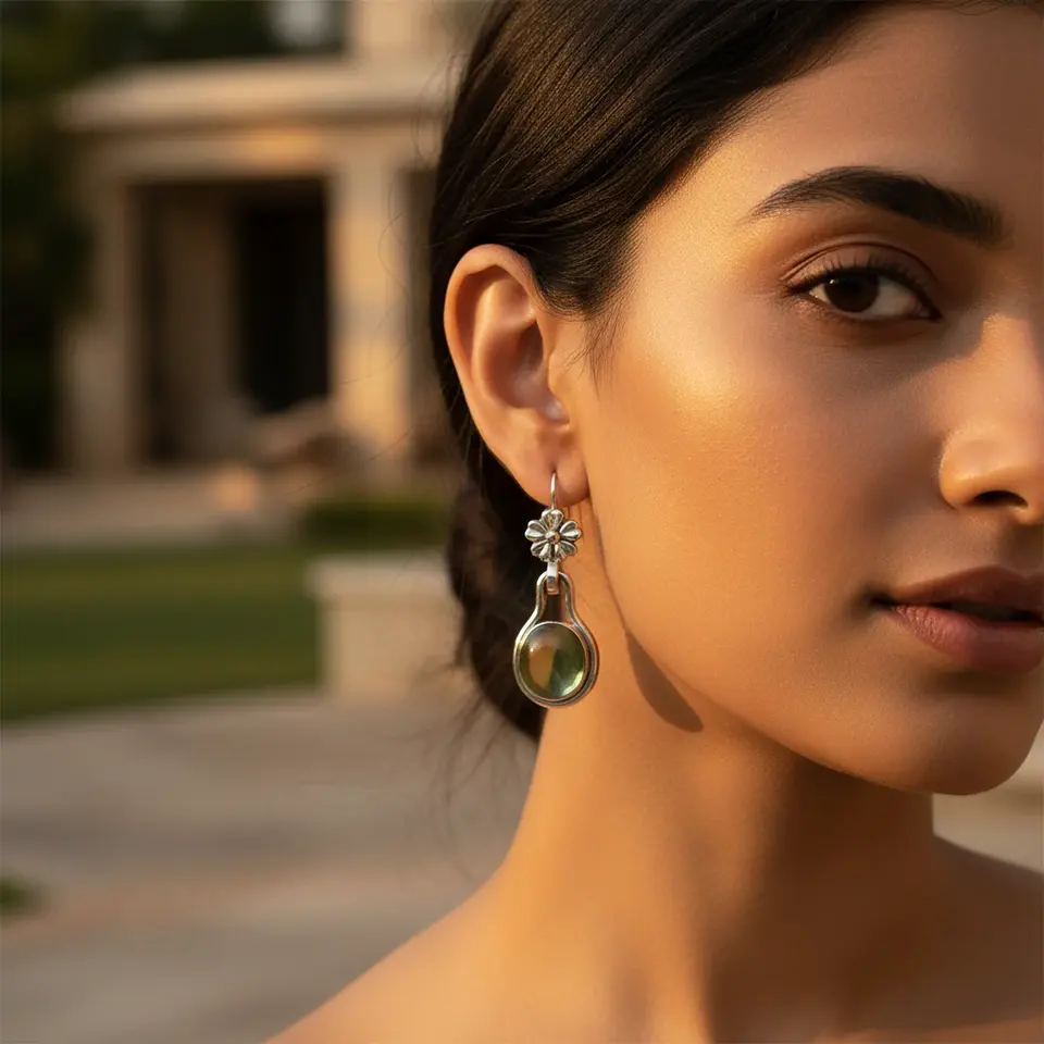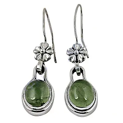925 Silver Women's Floral Design Drop Earrings with Green Stone Fashion Accessory
