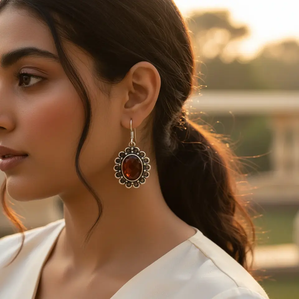 925 Silver Women's Gemstone Jewelry Elegant Carnelian Drop Earrings