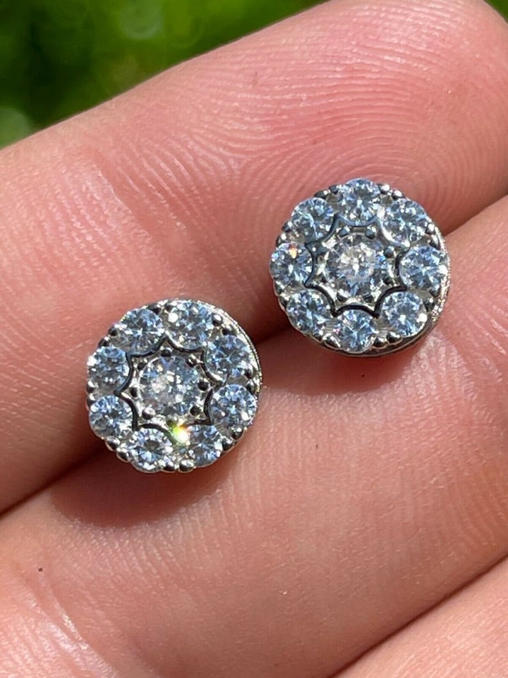 925 Sliver Round Cluster Stud Earrings With Prong Setting Sparkling Moissanite Diamonds Luxury Statement Stud For Unisex