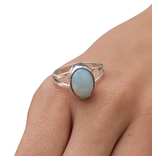 925 Stamp Solid High Quality Promise Ring Designer Jewelry 925 Sterling Silver Handmade Gemstone Blue Opal Spinner Ring Jewelry