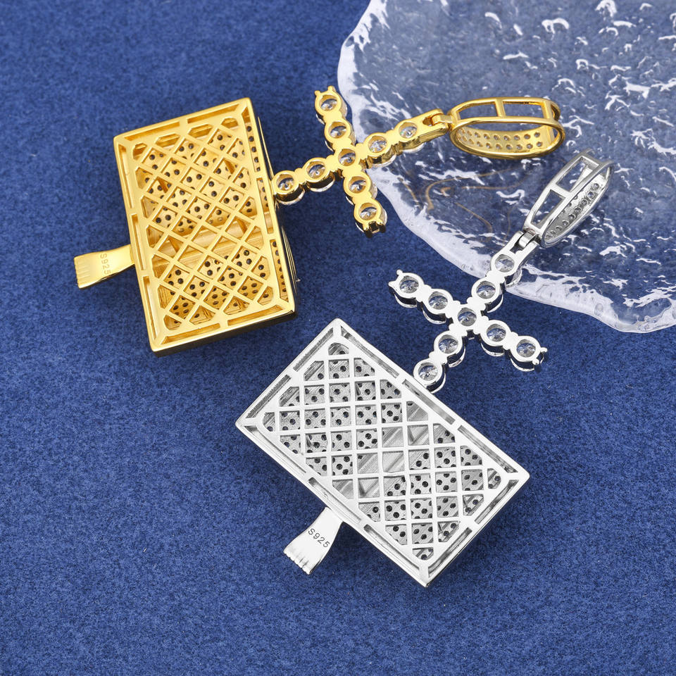 925 Solid Iced Out Moissanite Cross Pendant Necklace Unique Bible Prayer Design in Hip Hop Style