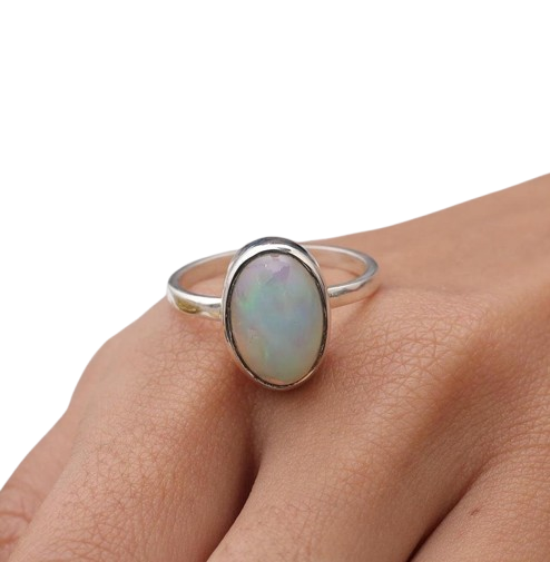 925 Solid Natural Designer Best Quality Promise Ring Jewelry 925 Sterling Silver Handmade Gemstone Opal Weddings Oval Cut