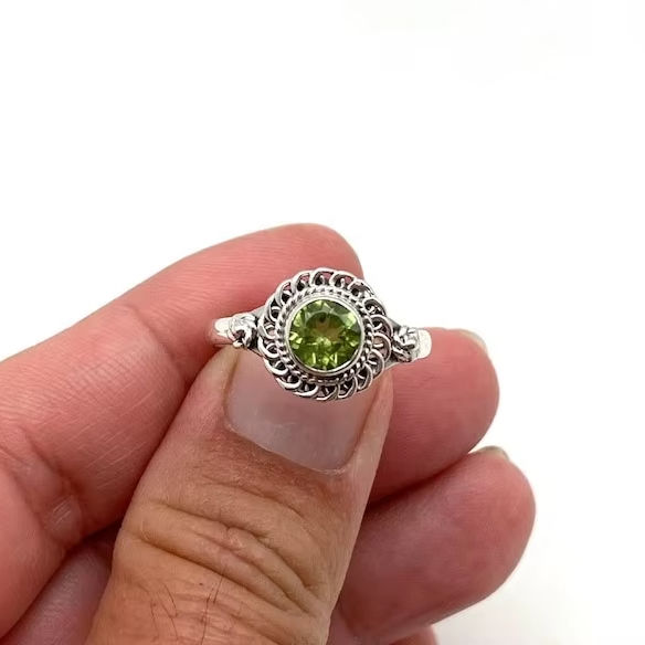 925 Solid Silver Classical Ring Jewelry For Women 925 Sterling Silver Peridot Gemstone Boho Style Handmade Ring Gift For Mom