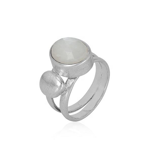 925 Solid Silver Double Band Textured Natural Moonstone Fine Girls Rings Designer Boho Chic Bulk Jewelry Manufacturer Supplier