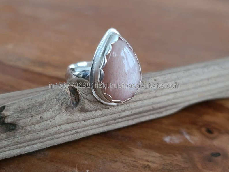 925 Solid Silver Ring Boho Style Peach Stone Gemstone Handcrafted Jewelry Gift for Her Silver Plated Moonstone Ring
