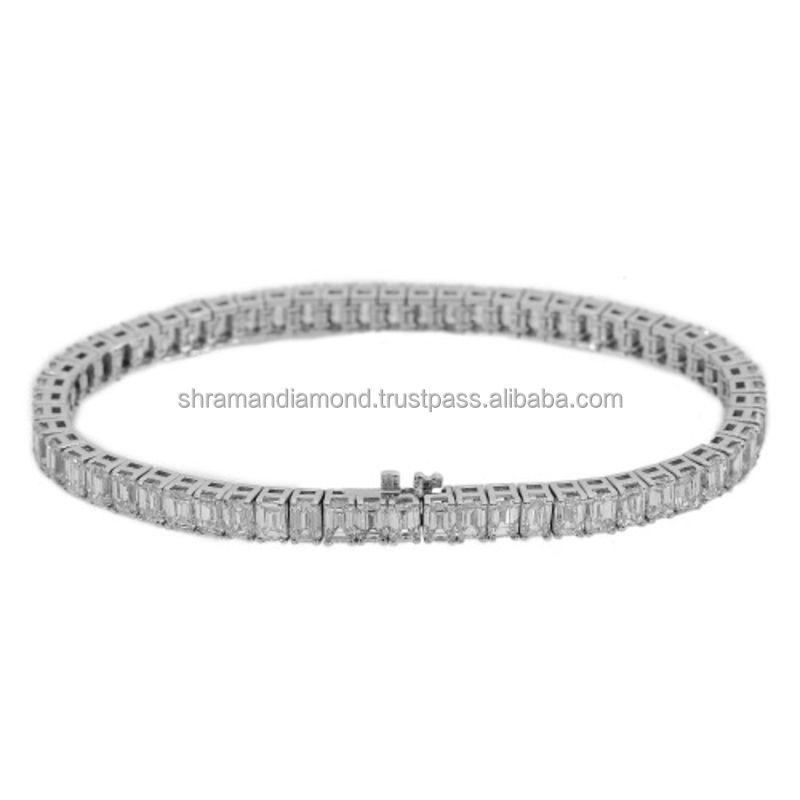 925 Solid Silver Sparkling Emerald Cut Moissanite Diamond Perfect Fine Jewelry Fashion Bracelets Chain Link Bracelets Gift Ideas