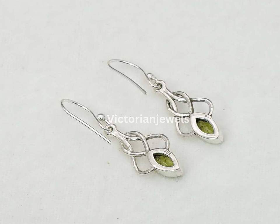 925 Solid Sterling Silver August Month Birthstone Peridot with Bezel Setting Marquise Shape Hook Earring
