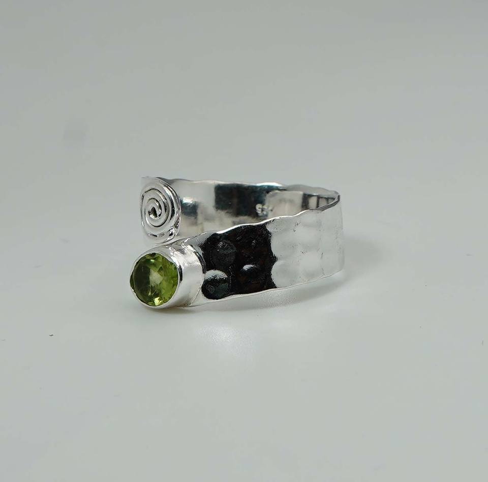 925 Solid Sterling Silver August Month Birthstone Peridot with Bezel Setting Oval Shape Gemstone Adjustable Ring