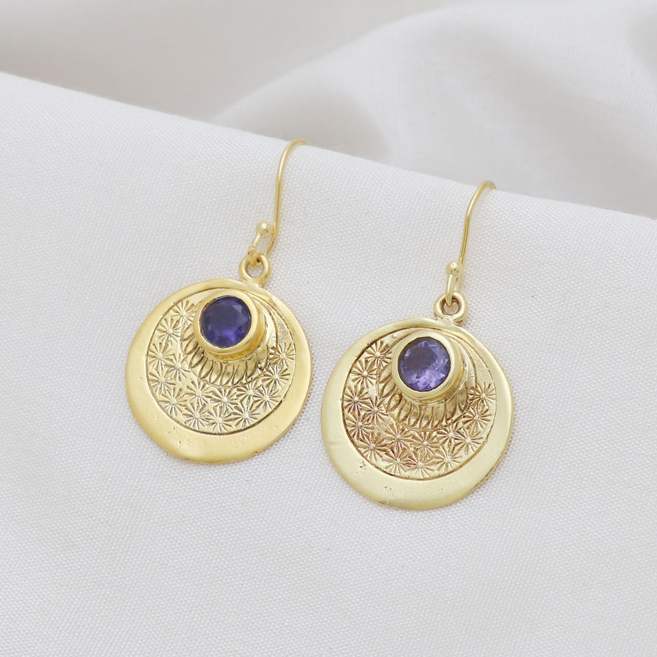 925 Solid Sterling Silver Gold Plated Natural Gemstone Iolite Handmade Earring at Factory Price for Sale Festive Season