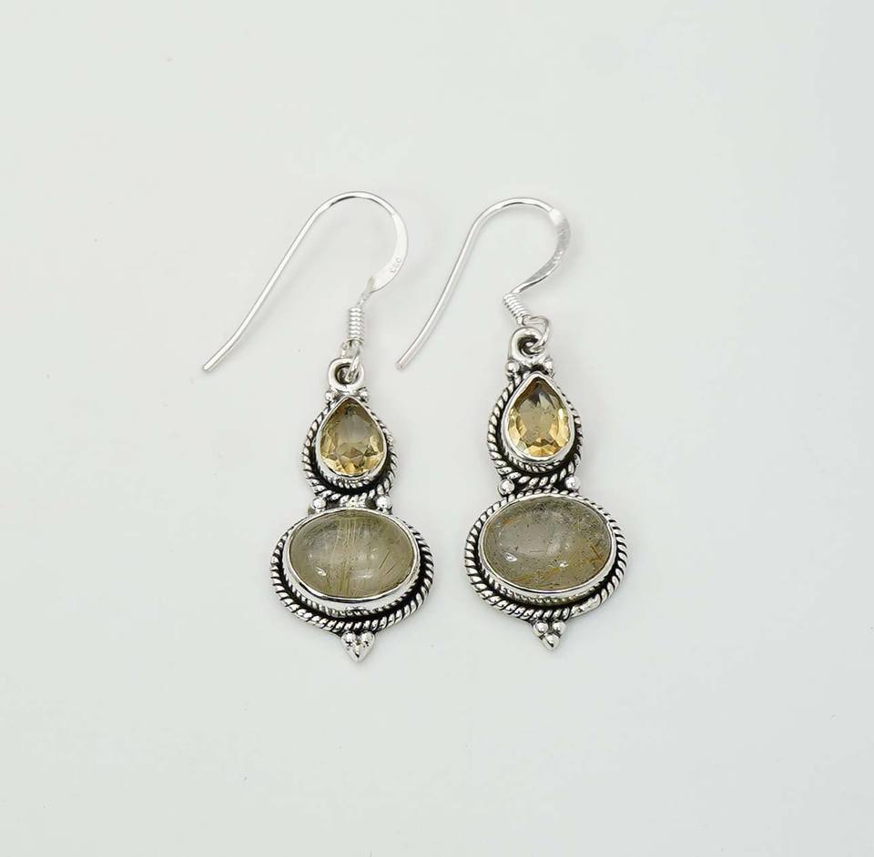 925 Sterling Silver Golden Rutile Yellow Emerald Charm Two Stone Hook Earrings for Women