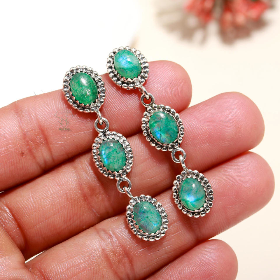 925 Solid Sterling Silver Green Moonstone Gemstone Earring Natural Stone Drop Earrings Personalized Natural Handmade Earrings
