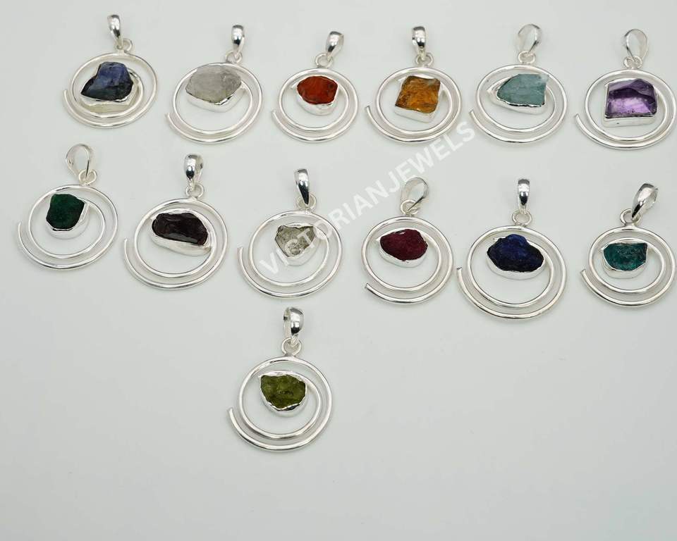 925 Solid Sterling Silver July Birthstone Pendant Rough Ruby Bezel Setting Charm Pendants