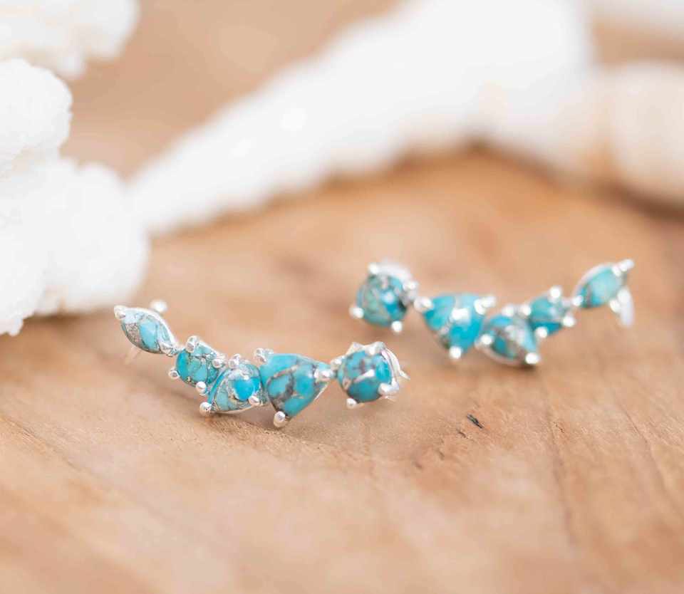 925 Solid Sterling Silver Natural Copper Turquoise Ear Climber Earrings Stud Jewelry Gemstone Handmade Dangle Earring