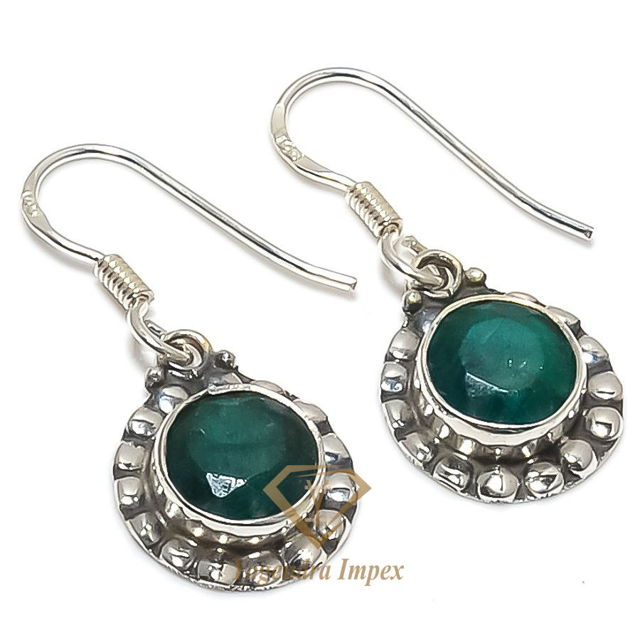 925 Solid Sterling Silver Stud Earrings for Women Natural Emerald Gemstone Trendy Green Gemstone for Weddings and Parties