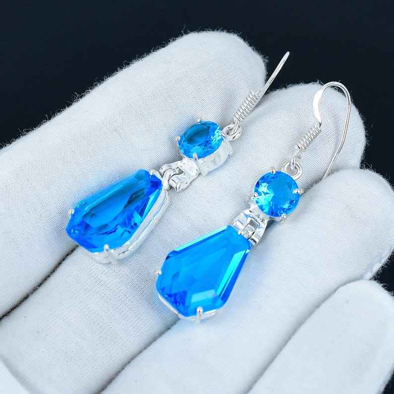 925 Solid Sterling Silver Swiss Blue Topaz Gemstone Earring Natural Stone Drop Earrings Personalized Natural Handmade Earrings