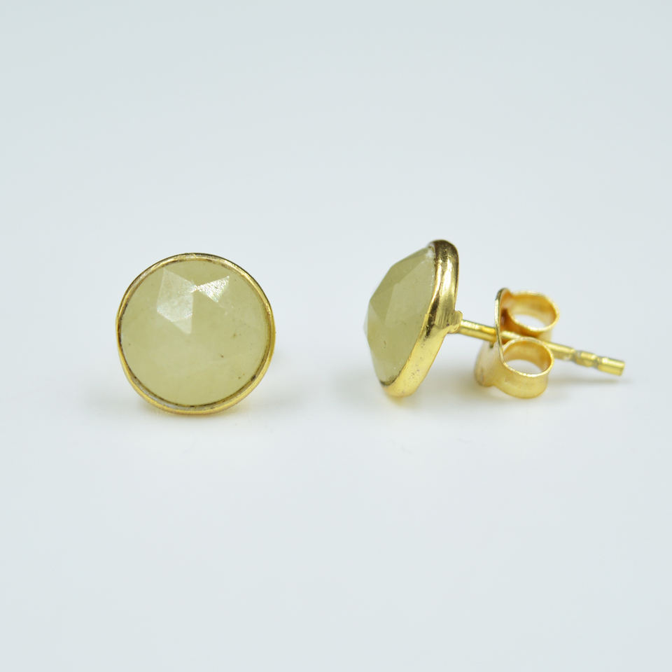 925 Solid Sterling Silver Trendy Gold Plated Stud Earrings with Beautiful Green Sapphire Gemstone for Engagement Wedding Party