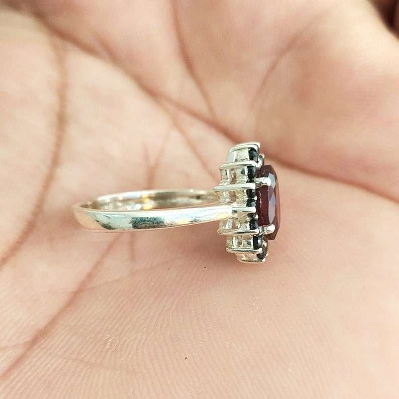 925 Solid Sterling Silver Unique Engagement Wedding Ring Genuine Red Garnet Cluster Vintage Jewelry for Bezel Setting Parties