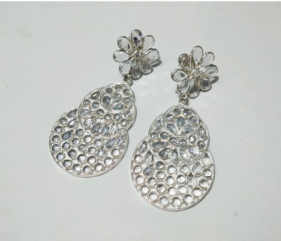 925 Solid Sterling Silver Women's Wedding Engagement Gift Dangle Drop Earrings With Faceted Pear Zircon Polki