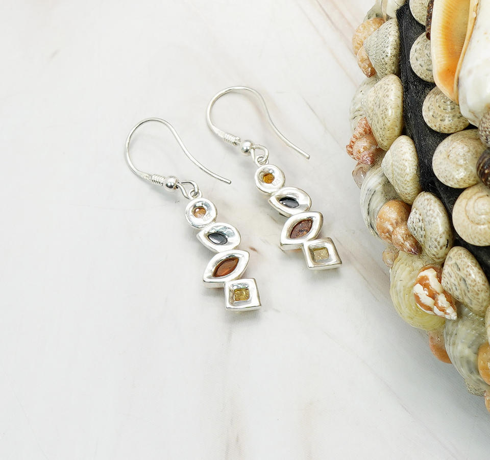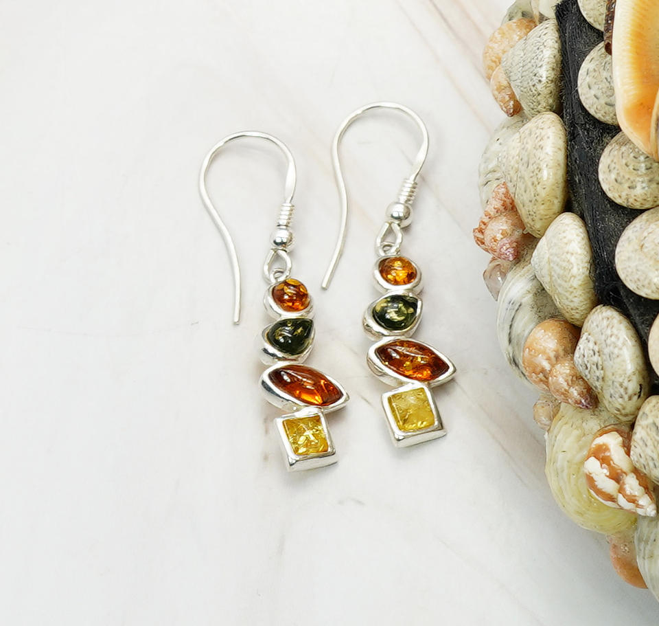 925 Solid Sterling Sliver Natural Baltic Amber Multi Gemstone Elegant Long Earring