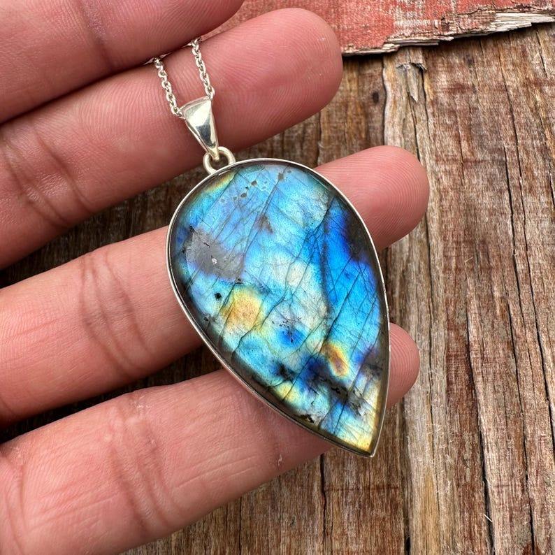 925 Stamp Wedding Gift Best Quality Jewelry Simple Designer 925 Sterling Silver Handmade Gemstone Spinner Labradorite Pendant