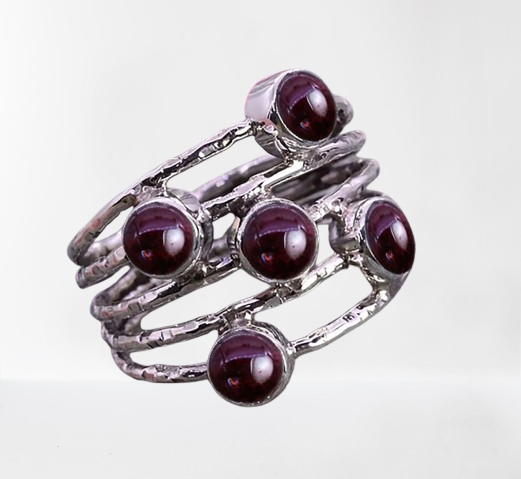 925 Stamped Silver Ring Gemstone Simple Handmade 925 Sterling Silver Garnet Spinner Fashion Ring Jewelry Fine Fashion Ring