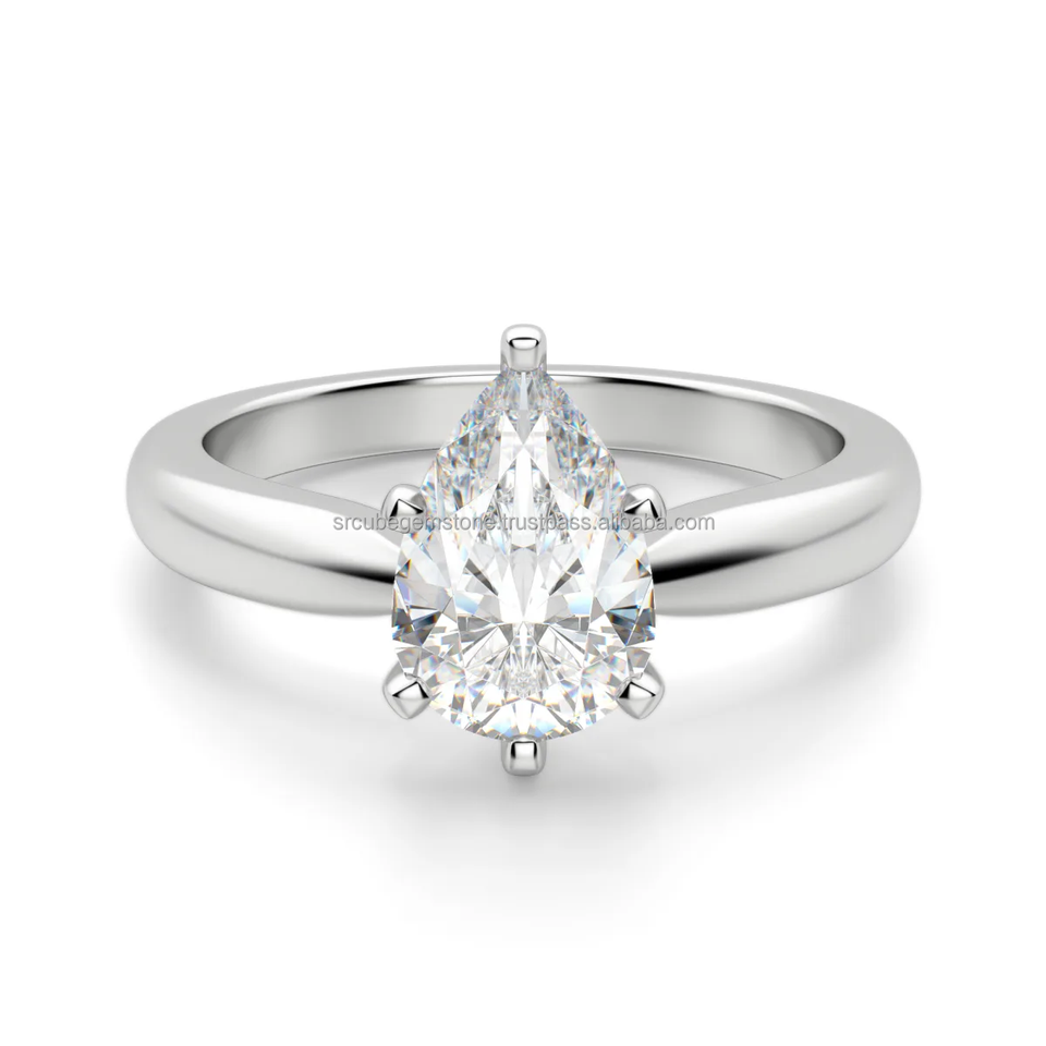 925 Starling Silver Dainty Solitaire Engagement Ring 1.0-2.0CT Pear Cut Lab Grown Diamond for Weddings Handcrafted Jewelry