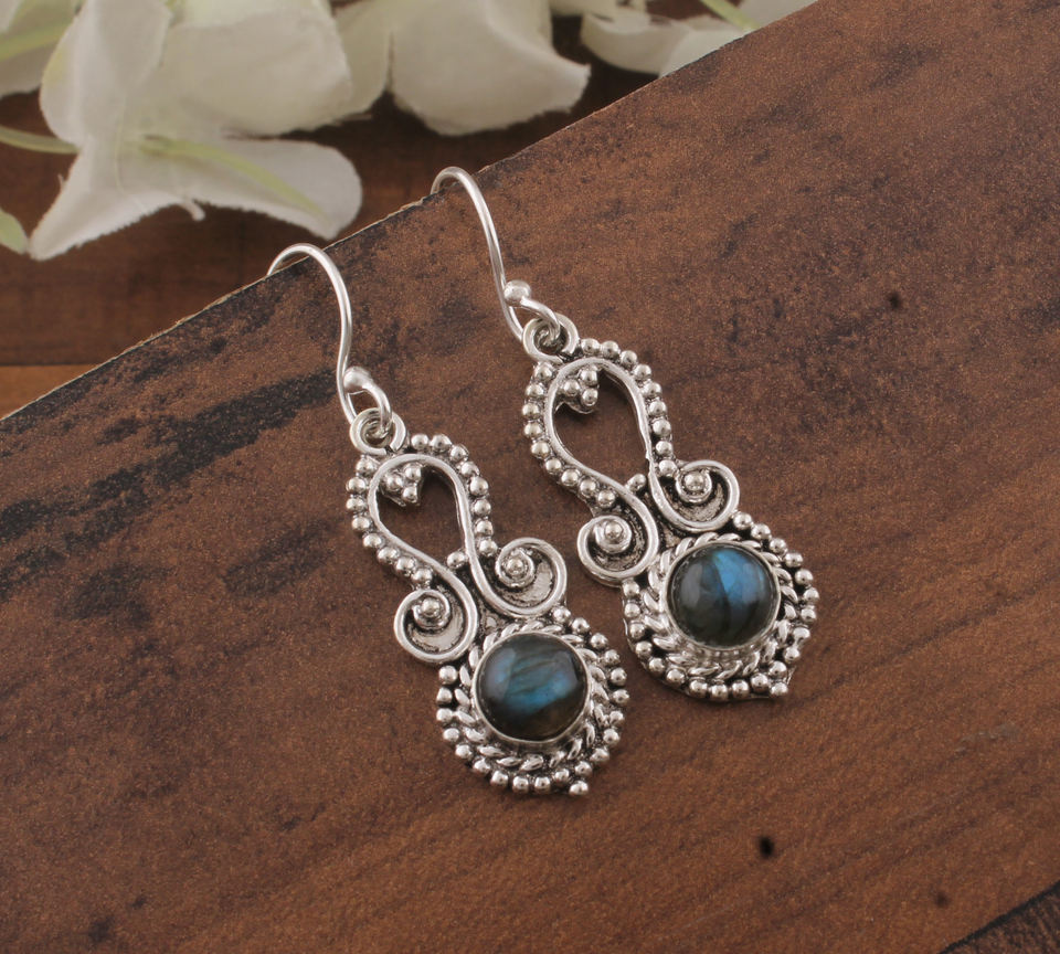 925 Sterling Silver Rose Gold Plated Natural Labradorite Drop Earrings Unique Handmade Vintage Fashion Wedding Anniversary Party