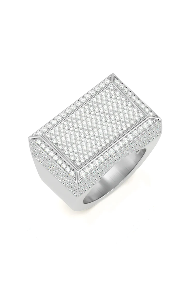 925 Starling Silver Rectangle Signet Ring Unique Simple Square Shape Engagement Ring White Diamond Gold Jewelry for Men's Gift