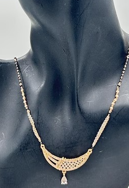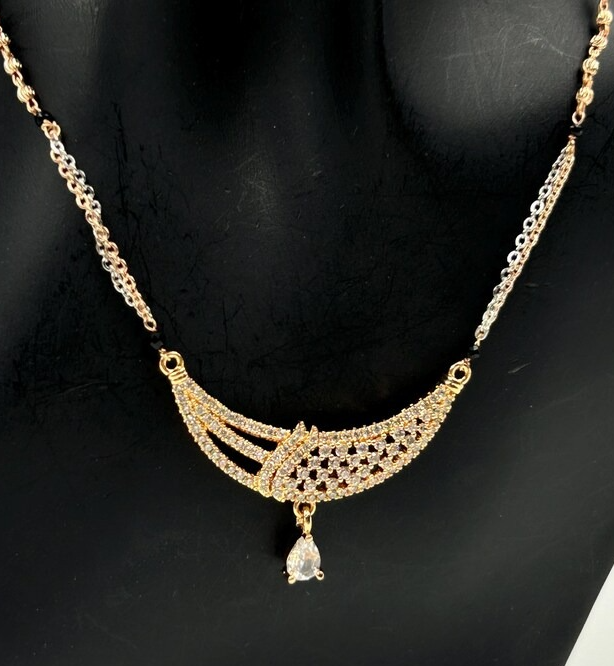925 Stealing Sliver Moissanite Diamond Mangalstra Pendant with Two Tone Chain Black Beads Necklace,