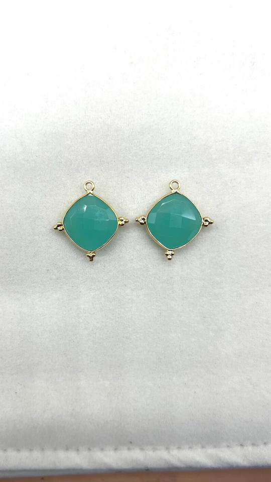 925 Sterling Silver 10mm Natural Blue Chalcedony 18k Gold Vermeil Bezel Setting Double Link Charm Connectors Making Jewelry