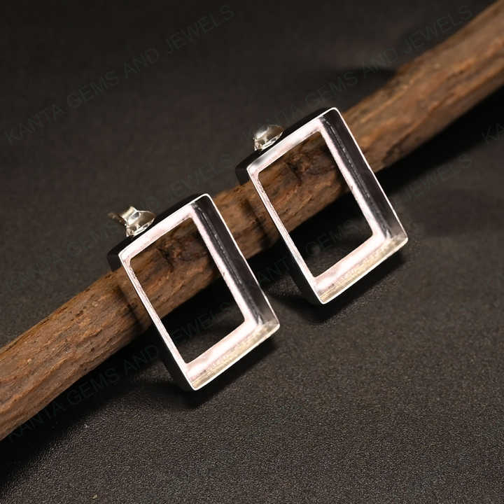 925 Sterling Silver 10x14mm Blank Bezel Rectangle Shape Stone Setting Earring Studs for Ashes & Resin Work Keepsake Jewelry Gift