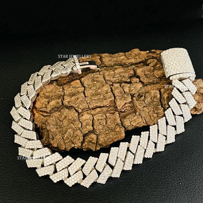 925 Sterling Silver 12 MM Wide VVS Moissanite Icedout Cuban Linked Bracelet Fine Jewelry.