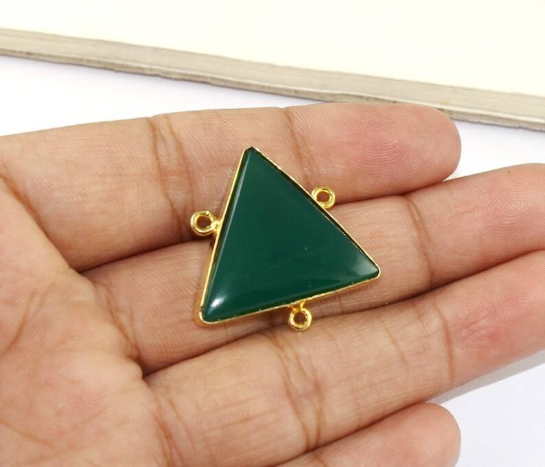 925 Sterling Silver 12mm Natural Green Onyx Cabochon Trillion Bezel Setting Triple Loop Link Charm Connectors Making Jewelry