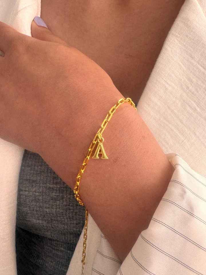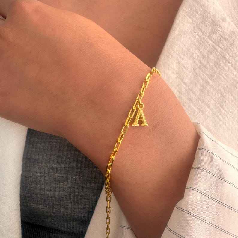 925 Sterling Silver 14K Gold Plated Initial And Birthstone Bracelet