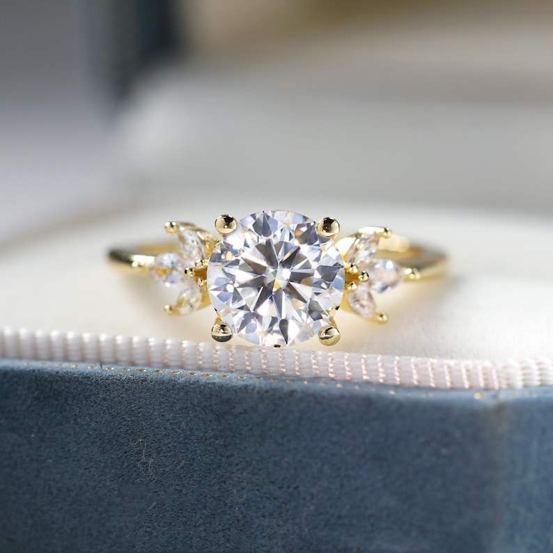 925 Sterling Silver 14K Gold Plated Natural Moissanite Wedding Engagement Ring Luxury Jewelry with Natural Color