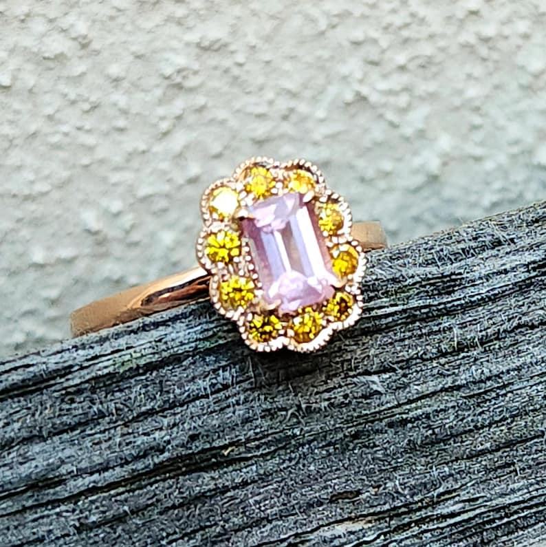 925 Sterling Silver 14K Gold Plated Spinel Emerald Cut Yellow Pave Set Fashionable High Quality Luxury Gemstone Ring for Women