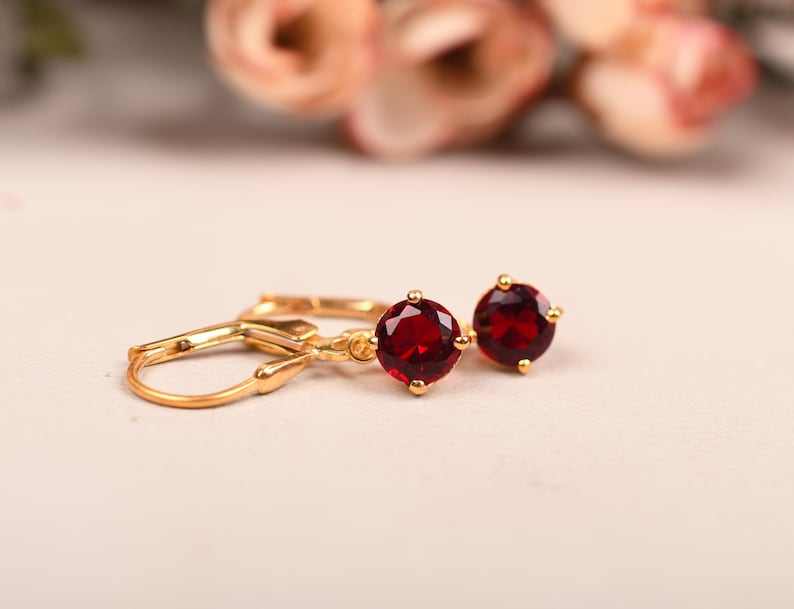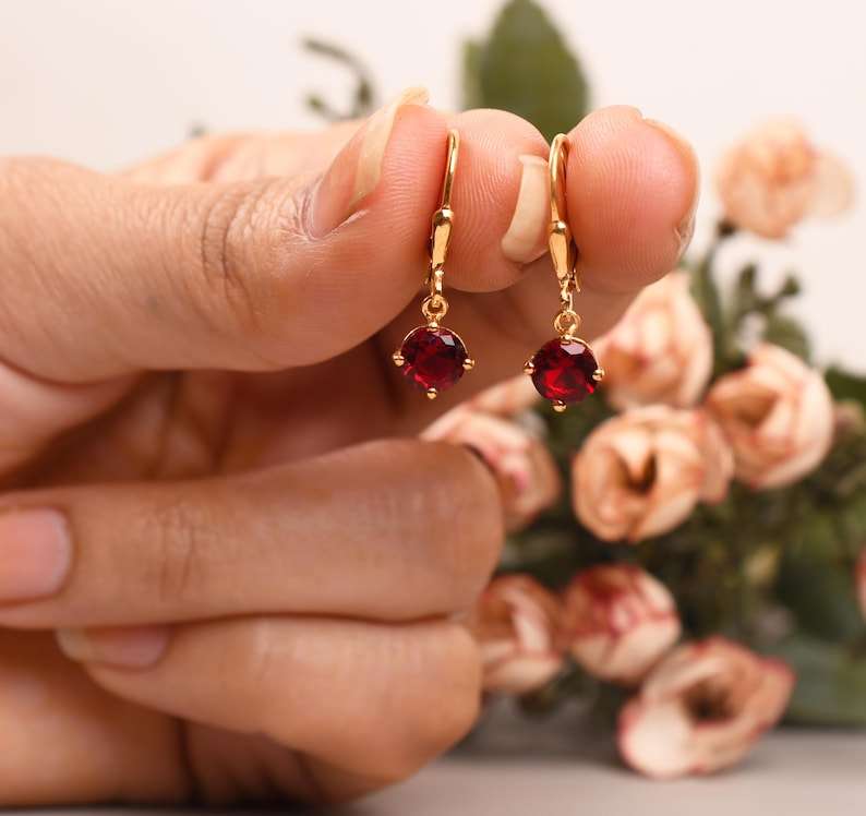 Keyword:Garnet Simple Stud Earrings With Sparkling Garnet Stud