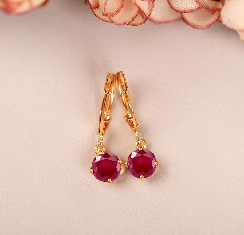 Keyword:Ruby Stud Earrings With Sparkling Dangle Gemstone Jewelry